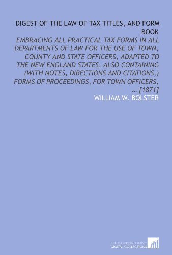 ![Digest of the law of tax titles, and form book: embracing all practical tax forms in all departments of law for the use of town, county and state officers, ... of proceedings, for town officers, ? [1871]](http://ecx.images-amazon.com/images/I/41Uw9OcGkjL.jpg)
